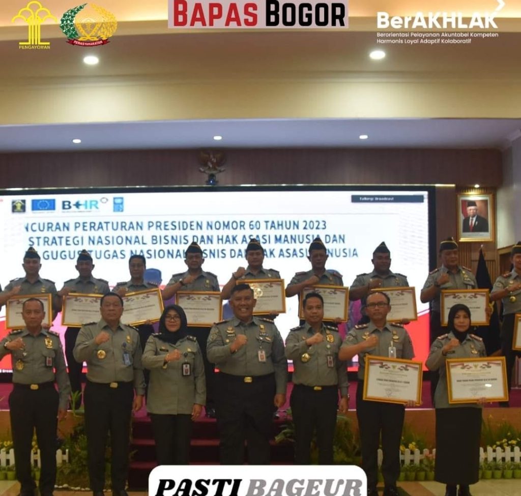 Bertempat di Aula Soepomo, Kantor Wilayah Kemenkumham Jawa Barat (06/11), Bapas Bogor menghadiri giat pemberian penghargaan P2HAM (Pelayanan Publik Berbasis HAM) bagi 18 Unit Pelaksana Teknis di Jawa Barat. Balai Pemasyarakatan Kelas II Bogor merupakan salah satu UPT yang menerima penghargaan tersebut. Pada kegiatan ini, Penerimaan penghargaan diwakili oleh Kepala Sub Seksi Bimbingan Klien Dewasa Bapas Bogor, Firmansyah. Selain pemberian penghargaan, kegiatan ini juga disertai Peluncuran Perpres No. 60 Tahun 2023 tentang Strategi Nasional Bisnis dan HAM oleh Menteri Hukum dan HAM RI.
