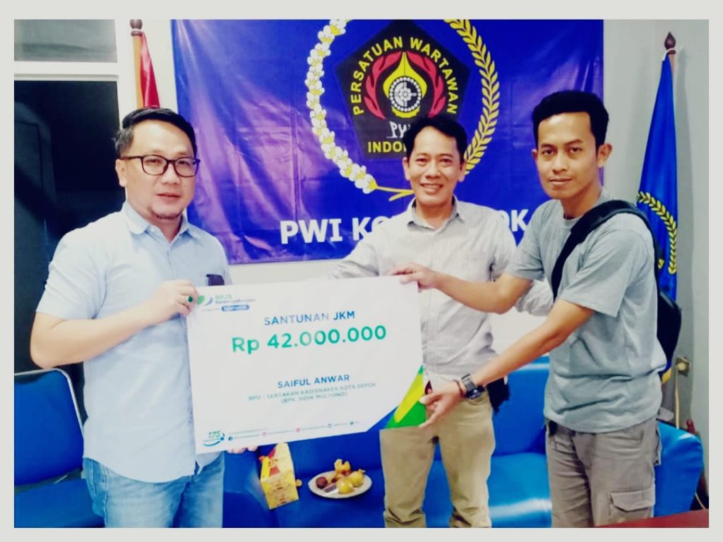 DELIK-HUKUM.ID ( KOTA DEPOK ) — Badan Penyelenggara Jaminan Sosial (BPJS), Ketenagakerjaan Kota Depok, menyerahkan santunan kematian untuk ahli waris wartawan senior almarhum Saiful Anwar, salah satu anggota Persatuan Wartawan Indonesia (PWI) Kota Depok.
