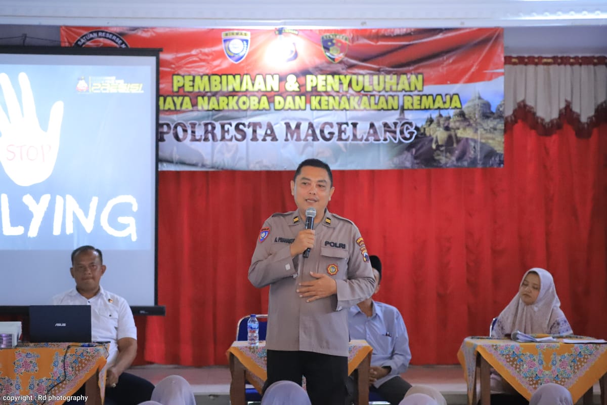 Delik-Hukum.id (Polresta Magelang) – Polda Jawa Tengah – Dalam mendukung terciptanya generasi pelajar tangguh yang siap untuk mewujudkan Indonesia maju tanpa narkoba, Polresta Magelang mengadakan Pembinaan dan Penyuluhan (Binluh). Kegiatan dilaksanakan di SMA Islam Sudirman Kecamatan Pakis, Kabupaten Magelang pada Rabu (08/11/2023).