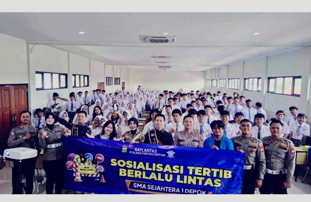 Seperti yang dilaksanakan Satuan Lalu Lintas (Satlantas) Polres Metro Depok, bekerjasama Duta Lalu Lintas (Lantas) Mandala Jaya serta mahasiswa Universitas Bina Sarana Informatika (UBSI) melakukan sosialisasi tertib berlalu lintas berlangsung, Selasa (11/11/2025), di SMA Sejahtera 1 Kota Depok, Jawa Barat.