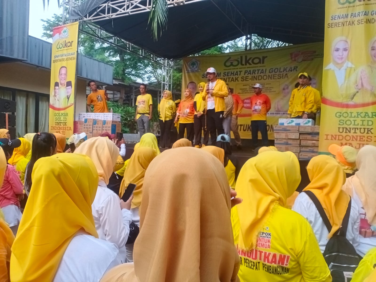 Senam masal yang digelar di DPD Golkar Kota Depok sendiri diikuti ribuan peserta dengan dimeriahkan berbagai doorprize.