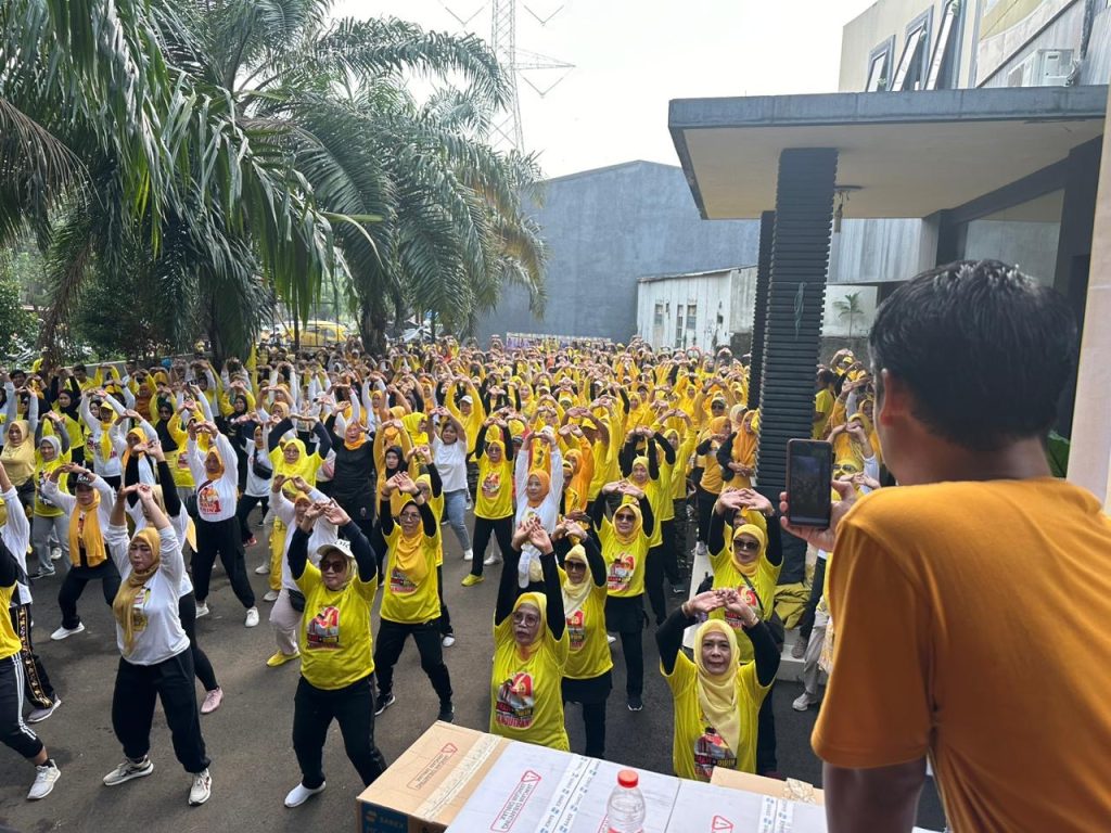 Senam masal yang digelar di DPD Golkar Kota Depok sendiri diikuti ribuan peserta dengan dimeriahkan berbagai doorprize.