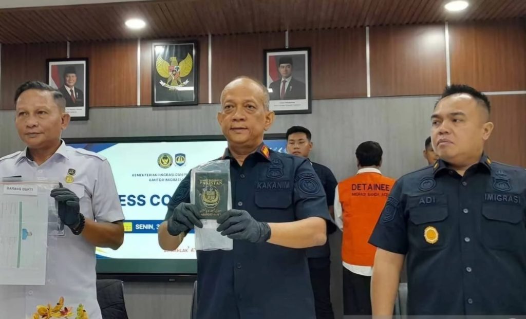Kepala Kantor Imigrasi Kelas I TPI Banda Aceh Gindo Ginting di Banda Aceh, Senin, mengatakan warga negara Pakistan tersebut berinisial MB berusia 44 tahun. FA ditahan untuk kepentingan penyelidikan dan penyidikan.