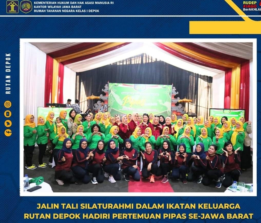 Kegiatan yang digelar di Lembaga Pemasyarakatan (Lapas) Kelas IIA Cibinong ini mengusung tema “Menjadi Perempuan Tangguh Dalam Berorganisasi dan Berperan Aktif Dalam Membangun Ketahanan Keluarga”. Dalam Pertemuan ini, turut hadir Ketua PIPAS Jawa Barat, Ny.Melyna Kadiyono beserta jajaran Istri dari Pimpinan Tinggi Pratama Kantor Wilayah Kementerian Hukum dan HAM Jawa Barat.