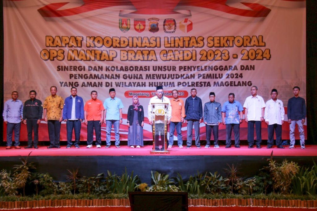 Polresta Magelang-Polda Jawa Tengah – Dalam rangka menghadapi Operasi Mantap Brata Candi 2023-2024, Polresta Magelang beserta Instansi terkait melaksanakan kegiatan Rapat Koordinasi (Rakor) Lintas Sektoral. Rakor dilaksanakan di Semanggi Ballroom Hotel Artos Magelang, pada Jumat (13/10/2023) pagi.