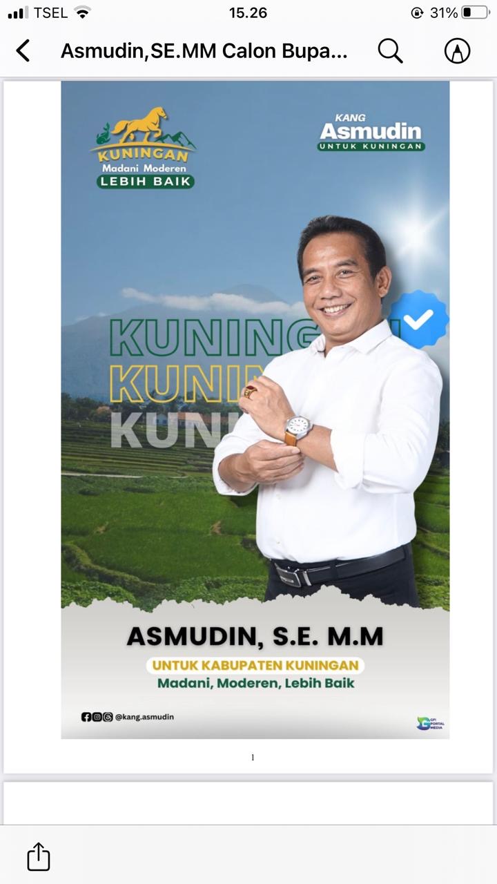 Kuningan Butuh sosok yang ulet dan bijak dalam setiap keputusan nya, sosok tersebut ternyata seorang pengusaha sukses di perantauan dan kini mudik untuk mengabdikan diri kepada Masyarakat Kabupaten Kuningan “Kang Asmudin, S.E,M.M,dengan slogan Kuningan Madani Moderen dan lebih baik.
