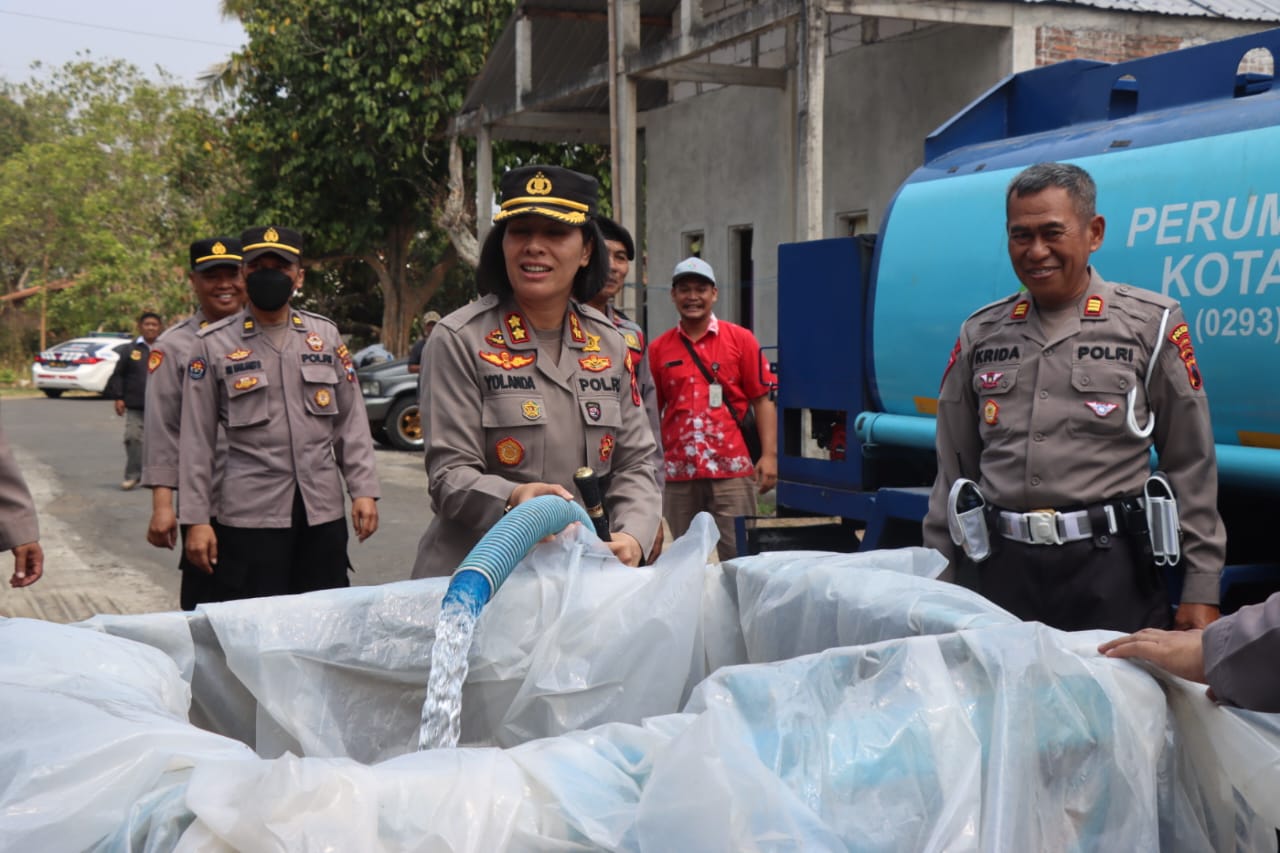Polres Magelang Kota Polda Jateng – Kapolres Magelang Kota, AKBP Yolanda Evalyn Sebayang, S.I.K., M.H, melakukan aksi peduli terhadap masyarakat dengan menyalurkan bantuan air bersih sejumlah 8.000 liter kepada warga Desa Dlimas, Kecamatan Tegalrejo, Magelang. Bantuan air bersih ini disalurkan melalui dua truk tangki air dari PDAM Kota Magelang dan didampingi oleh sejumlah Pejabat Utama (PJU) Polres Magelang Kota. Kamis, (12/10/2023)