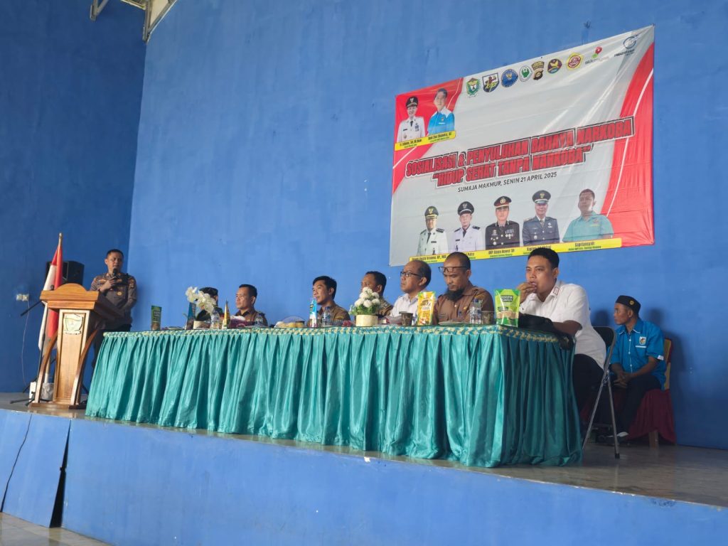 DELIK-HUKUM.ID ( MUARA ENIM, SUMSEL ) — Dalam upaya menekan penyalahgunaan narkotika di kalangan masyarakat, Kapolsek Gunung Megang AKP Aisen Hower, SH turut hadir dan memberikan dukungan langsung pada kegiatan Sosialisasi dan Penyuluhan Bahaya Narkoba bertajuk “Hidup Sehat Tanpa Narkoba” yang diselenggarakan oleh Pemerintah Desa Sumaja Makmur, Kecamatan Gunung Megang, pada Senin, 21 April 2025.