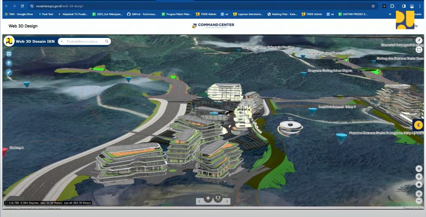 “Kami telah mengembangkan inovasi dengan mengintegrasikan desain 3D pada data BIM dan SIG untuk memvisualisasikan progres pembangunan IKN secara real time. Integrasi data geospasial tersebut dikelola menggunakan teknologi cloud sebagai big data yang disebut Command Center IKN yang dapat diakses di nusantara.pu.go.id. Command Center ini juga didukung IoT dan real time data,” jelas Nazib.