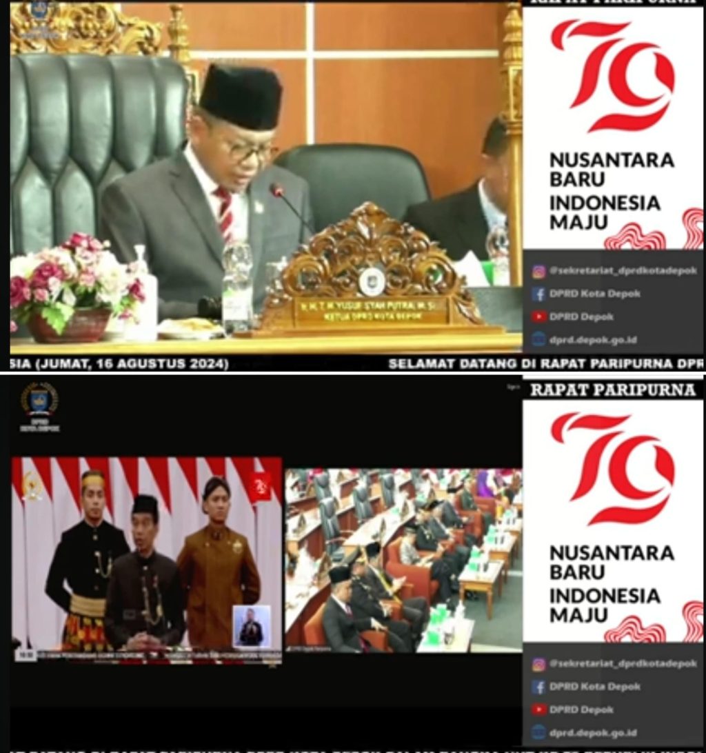 DELIK-HUKUM.ID ( DEPOK ) — Ketua Dewan Perwakilan Rakyat (DPRD) Kota Depok, H. TM. Yusufsyah Putra, kembali pimpin Rapat Paripurna Masa Sidang Kedua Tahun Sidang 2024. Paripurna tersebut sekaligus untuk menyimak pidato kenegaraan Presiden Republik Indonesia dalam rangka peringatan HUT ke-79 Kemerdekaan RI, berlangsung Jumat, (16/8/2024), di Ruang Sidang Paripurna DPRD Kota Depok, Jawa Barat.