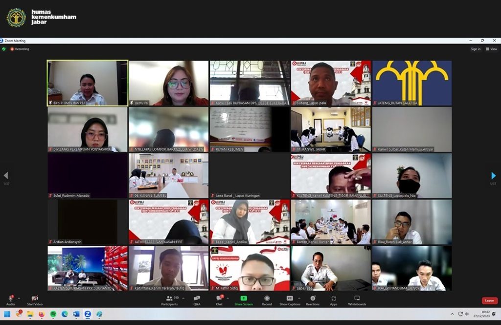 DELIK-HUKUM.ID (BANDUNG) — Kanwil Kemenkumham Jabar hari ini, Rabu, 27 Desember 2023, hadiri kegiatan evaluasi dan bimbingan teknis pencatatan realisasi pengadaan barang/jasa Tahun Anggaran 2023, yang diadakan oleh Biro Pengelolaan Barang Milik Negara dan Pengadaan Barang/Jasa secara virtual, bertempat di Ruang Rapat Suhendro Hendarsin.