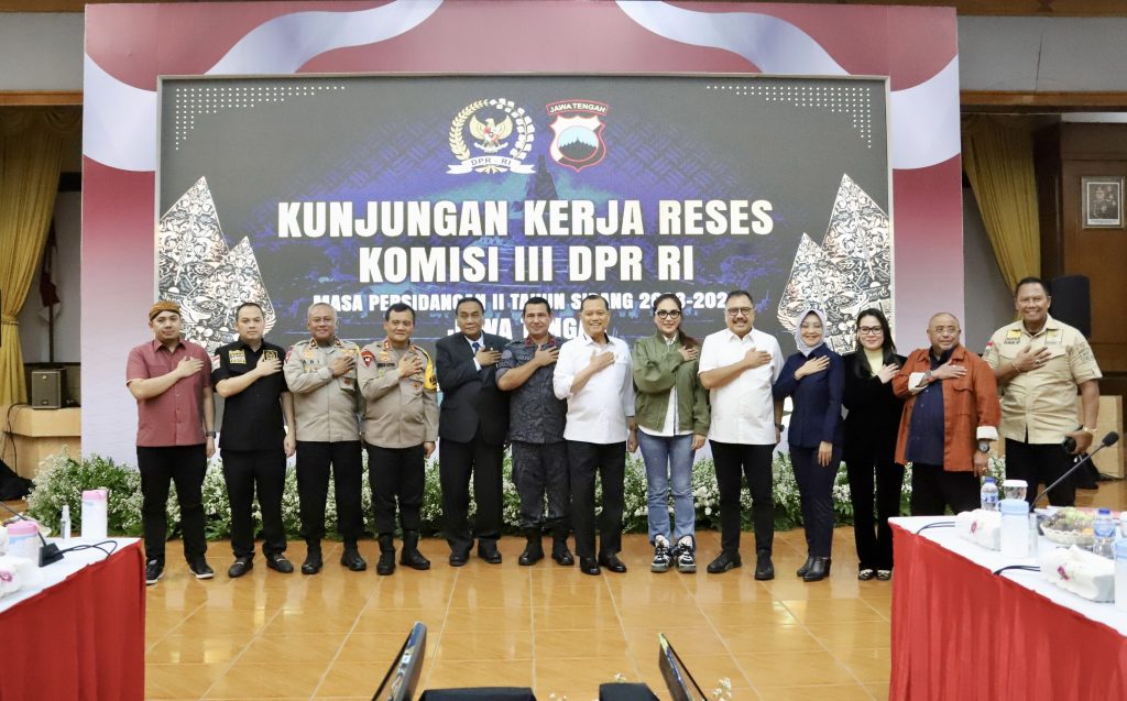 DELIK-HUKUM.ID (SEMARANG, Polda Jateng) — Rombongan komisi III DPR RI yang dipimpin Ir Bambang Wuryanto, mengunjungi Polda Jawa Tengah dalam rangka Kunjungan Kerja Reses Masa Persidangan II Tahun Sidang 2023/2024. Dalam kunjungan itu, rombongan para wakil rakyat tersebut mengadakan pertemuan dengan Kapolda Jateng , Irjen Pol Ahmad Luthfi serta Kepala BNN Provinsi Jateng, Brigjen Pol Agus Rohmat didampingi para pejabat utama kedua instansi di gedung Borobudur Mapolda Jateng, Senin (11/12/2023)