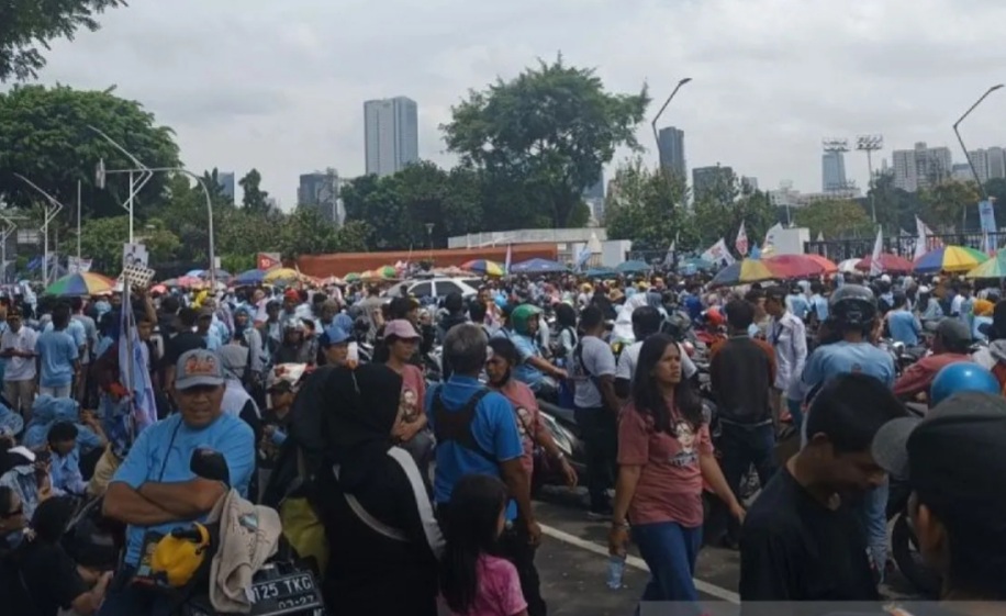 Di pintu masuk 10 GBK pada Sabtu sekitar jam 13.30 WIB, ribuan massa tertahan di pintu masuk. Mereka memilih meneduh di bawah pohon dan juga berjalan. Tidak hanya yang keluar, tapi massa pendukung juga berebut untuk keluar dari dalam area GBK, karena di dalam sudah terlalu padat.