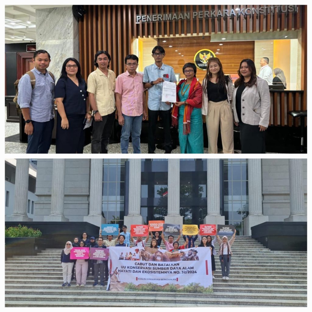 DELIK-HUKUM.ID ( JAKARTA ) — Perwakilan komunitas Masyarakat Adat dan organisasi masyarakat sipil mengajukan Pengujian Formil ke Mahkamah Konstitusi atas terbitnya Undang-Undang (UU) Nomor 32 Tahun 2024 tentang Perubahan atas Undang-Undang Nomor 5 Tahun 1990 tentang Konservasi Sumber Daya Alam Hayati dan Ekosistemnya (UU KSDAHE 32/2024) terhadap Undang-Undang Dasar Negara Republik Indonesia 1945. Permohonan ini didaftarkan oleh Aliansi Masyarakat Adat Nusantara (AMAN), Wahana Lingkungan Hidup Indonesia (WALHI), Koalisi Rakyat untuk Keadilan Perikanan (KIARA) dan perwakilan Masyarakat Adat Ngkiong, Mikael Ane atas dukungan Koalisi Untuk Konservasi Berkeadilan.