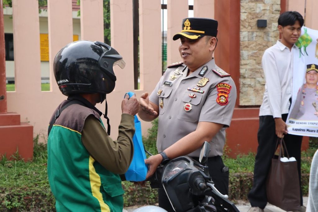 DELIK-HUKUM.ID ( MUARA ENIM ) —Suasana sore di Jalan Bambang Utoyo, tepatnya di depan Mako Polres Muara Enim, mendadak berbeda. Di tengah hiruk-pikuk kendaraan yang melintas menjelang waktu berbuka puasa, tampak sosok Kapolres Muara Enim turun langsung ke tepi jalan membagikan takjil kepada para pengguna jalan.