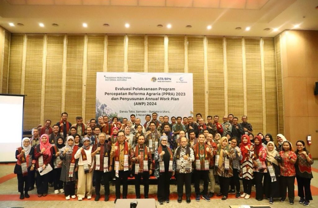 DELIK-HUKUM.ID, (SUMATERA UTARA),- – Kementerian Agraria dan Tata Ruang/Badan Pertanahan Nasional (ATR/BPN) melalui Direktorat Jenderal Survei dan Pemetaan Pertanahan dan Ruang (Ditjen SPPR) mengadakan Evaluasi Pelaksanaan Program Percepatan Reforma Agraria (PPRA) 2023 dan Penyusunan _Annual Work Plan_ (AWP) 2024. Kegiatan yang diadakan dengan kerja bersama Bank Dunia ini diselenggarakan di Marianna Resort & Convention, Tuktuk Samosir, Sumatra Utara, mulai Rabu-Jumat, 1-3 November 2023.