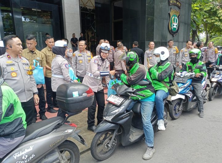 Polda Metro Jaya Gelar Jum’at Peduli, Salurkan 400 Paket Sembako Untuk Pengemudi Ojek Online