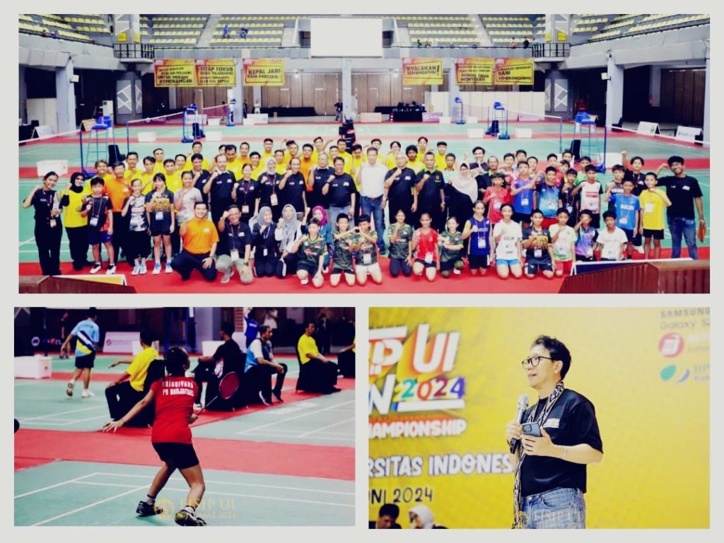 DELIK-HUKUM.ID ( DEPOK ) — Dekan Fakultas Ilmu Sosial dan Ilmu Politik Universitas Indonesia (FISIP UI), Profesor Dr. Semiarto Aji Purwanto, membuka turnamen bulutangkis yang telah menyandang predikat turnamen swasta nasional, dan didukung langsung Persatuan Bulu Tangkis Seluruh Indonesia (PBSI), berlangsung pada Rabu (19/6/2024), di Balairung UI, Depok, Jawa Barat.
