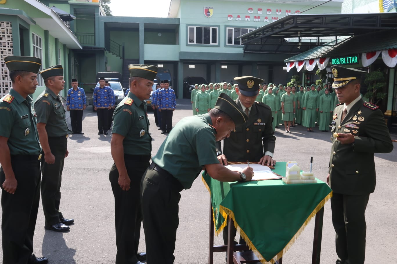 Pergeseran posisi jabatan Danramil dan laporan korps pindah satuan, ditandai dengan proses serah terima jabatan, yang dipimpin langsung oleh Dandim 0808/Blitar.