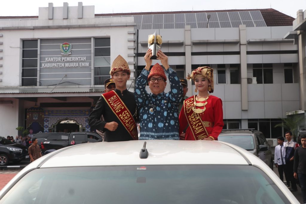 DELIK-HUKUM.ID (Muara Enim) — Sebagai ungkapan rasa kegembiraan sekaligus wujud syukur karena meraih penghargaan Adipura oleh Pemerintah Kabupaten Muara Enim, Pj. Bupati Muara Enim, Dr. H. Ahmad Rizali, M.A., @ahmadrizali64 melaksanakan arak-arakan Piala Adipura bersama dengan Dandim 0404 Muara Enim, Letkol. Inf. Nugraha, S.H., M.I.P., beserta para petugas kebersihan, Jumat pagi (15/03/2024). Adapun pawai arak-arakan dan penyambutan atas kembali diraihnya penghargaan piala Adipura ke-15 kalinya secara berturut-turut dari Kementerian Lingkungan Hidup dan Kehutanan (KLHK) RI ini disambut meriah dan antusias oleh seluruh masyarakat khususnya di Kecamatan Muara Enim.
