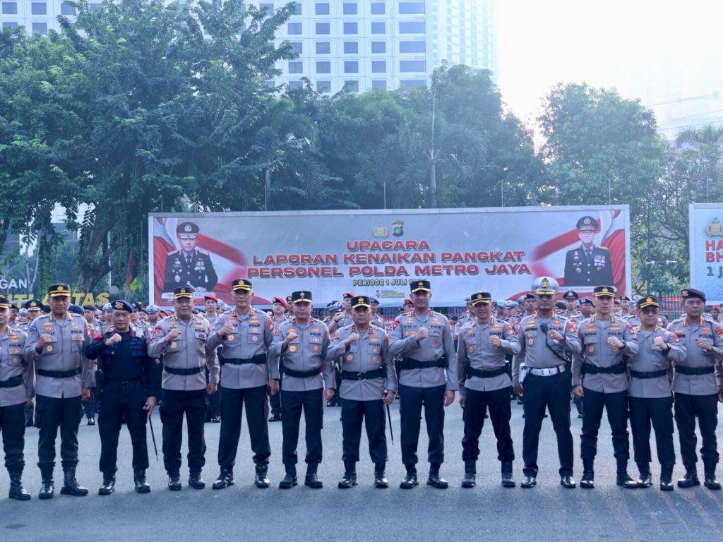 DELIK-HUKUM.ID ( JAKARTA ) — Polda Metro Jaya menggelar Upacara Kenaikan Pangkat Periode 1 Juli 2024 bagi seluruh Pamen, Pama, Bintara dan Tamtama Satker Polda Metro Jaya di Lapangan Presisi DitLantas Polda Metro Jaya. Senin (1/7/2024).