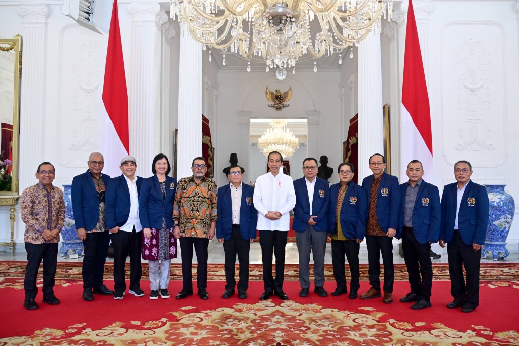 Presiden Joko Widodo menerima Pengurus Persatuan Wartawan Indonesia (PWI) Pusat di Istana Merdeka, Jakarta, pada Selasa, 7 November 2023. Dalam pertemuan tersebut, PWI melaporkan kepada Presiden Jokowi atas terpilihnya Ketua Umum PWI Pusat serta upaya PWI dalam peningkatan kompetensi wartawan.