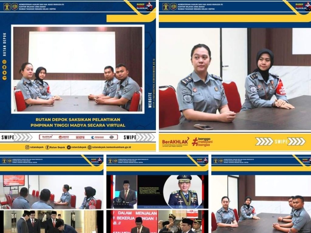Depok, DELIK – HUKUM.ID-Rumah Tahanan Negara Kelas I Depok menyaksikan pelantikan Komjen Pol. (P) Dr. (H.C.) Andap Budhi Revianto, S.I.K., M.H., dilantik sebagai ASN Kemenkumham RI oleh Menteri Hukum dan HAM Yasonna H. Laoly berdasarkan Surat Keputusan Presiden Republik Indonesia di Ruang Rapat Kepala Rutan, Senin (4/9/2023), hadi dalam kegiatan ini Kepala Seksi Pengelolaan, Tunggadewi Ratu Wardhani didampingi jajaran pegawai JFU.