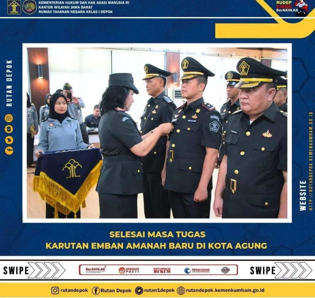 DEPOK, DELIK – HUKUM.ID. Kepala Rutan Kelas I Depok, Andi Gunawan hari ini telah resmi menjabat sebagai Kepala Lembaga Pemasyarakatan Kelas IIB Kota Agung, Karutan dilantik dan diambil sumpahnya bersama dengan 46 Pegawai lainnya di lingkungan Kanwil Kemenkumham Lampung, (12/10/23).