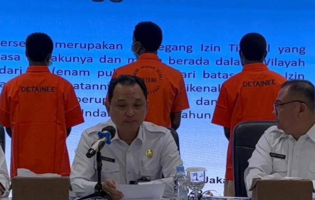 “Dalam pemeriksaan, didapatkan informasi bahwa OVO (24), OFE (25), dan NCC (24) merupakan orang asing berkebangsaan Nigeria. Mereka telah tinggal di Indonesia melebihi batas dari izin tinggal yang diberikan,” kata Kepala Kantor Wilayah Direktorat Jenderal Imigrasi DKI Jakarta Pamuji Raharja.