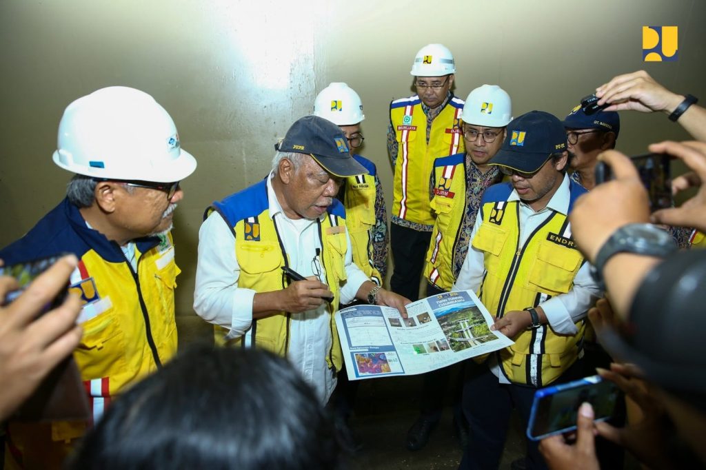DELIK-HUKUM.ID (SUMEDANG, JABAR) — Menteri Pekerjaan Umum dan Perumahan Rakyat (PUPR) Basuki Hadimuljono meninjau langsung Terowongan Cisumdawu pada Rabu (3/1/2024) yang sempat viral dikabarkan retak akibat bencana gempa bumi yang terjadi di Kabupaten Sumedang, Jawa Barat. Terowongan Cisumdawu merupakan terowongan sepanjang 472 meter bagian dari Jalan Tol Cisumdawu yang terletak di Sta. 12+628 – Sta. 13+100, Desa Pamulihan dan Desa Cigendel, Kecamatan Pamulihan, Kabupaten Sumedang, Jawa Barat.