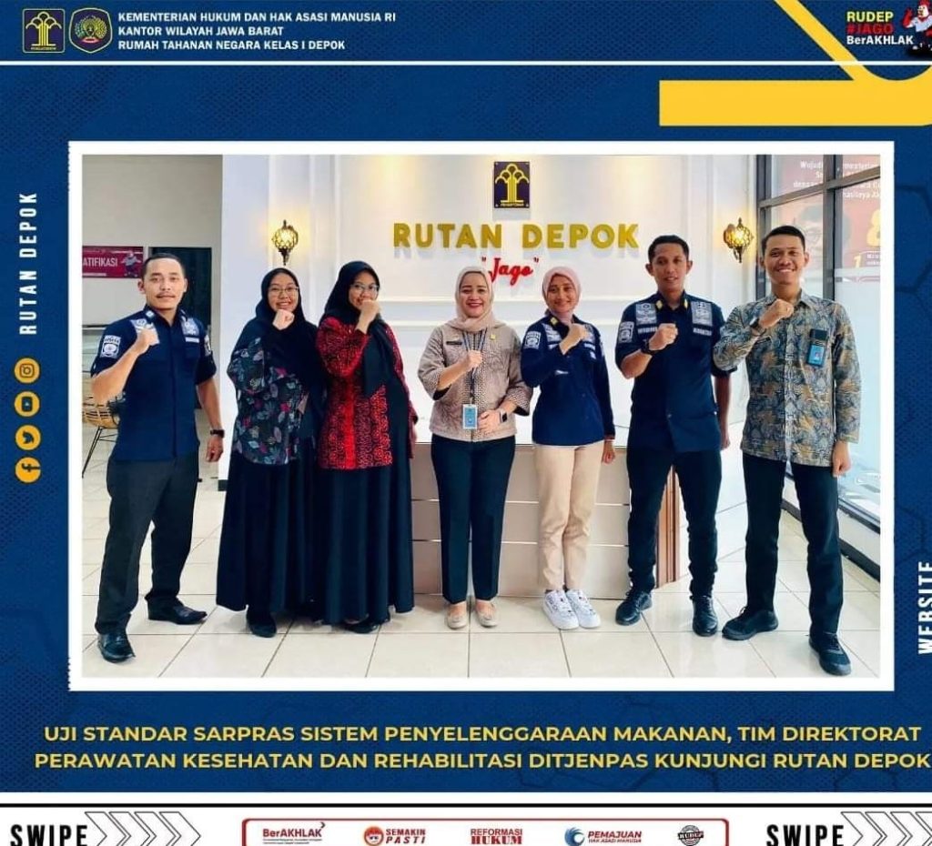 Depok, DELIK – HUKUM.ID. Rutan Kelas I Depok hari ini menerima kunjungan kerja dari Tim Direktorat Perawatan Kesehatan dan Rehabilitasi Direktorat Jenderal Pemasyarakatan (14/09/23). Kunjungan yang dipimpin oleh Lily Pendiawaty, Subkoordinator Gizi dan makanan ini di lakukan dalam rangka kegiatan uji baca standard sarana prasarana pendukung sistem penyelenggaraan makanan bagi tahanan, anak dan narapidana di Rutan Kelas I Depok.