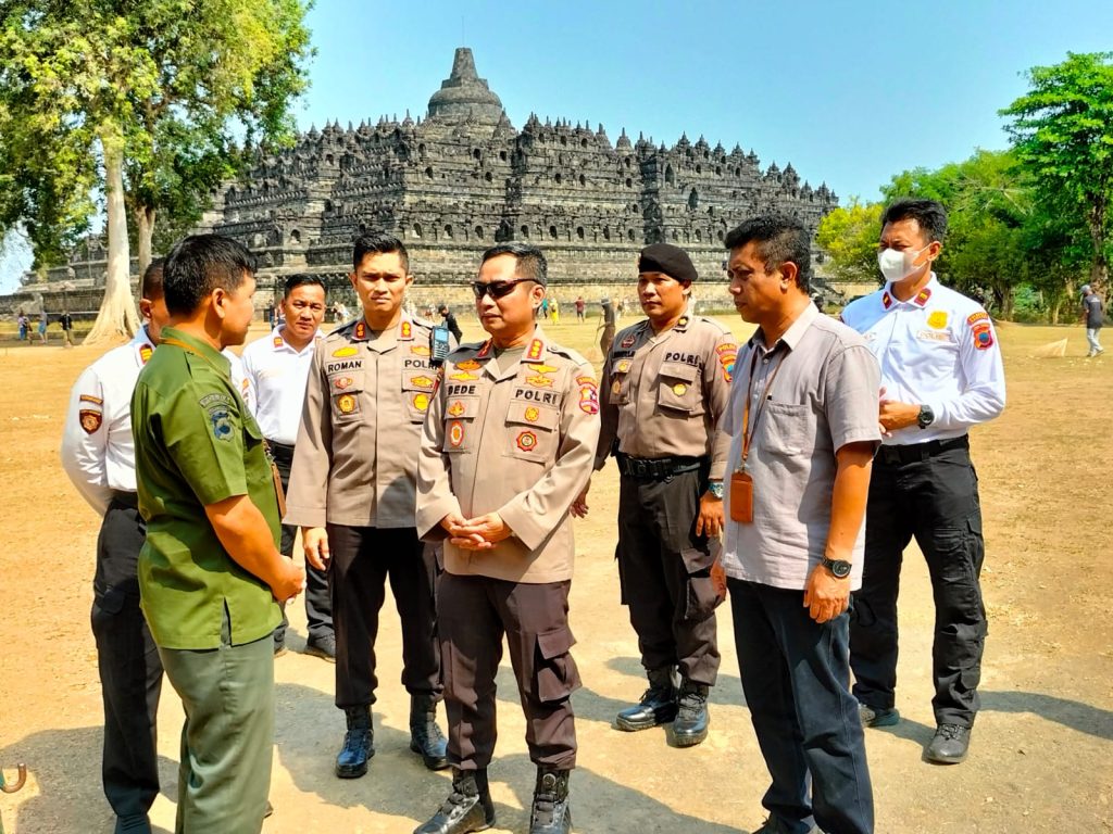 Polresta Magelang-Polda Jawa Tengah – Dalam kesempatan kunjungan supervisi, Kasubbid Audit Baharkam Mabes Polri, Kombes Pol Dede Ruhiyat Djunaidi, S.I.K., M.A., berkesempatan meninjau Kawasan Taman Wisata Candi Borobudur (TWCB), Selasa (10/10/2023) siang. Saat berjalan depan Pos Pengamanan tepatnya jalan menurun arah ke perempatan Kenari keluar kawasaan Candi borobudur tiba-tiba melihat ada wisatawan jalan kaki jatuh terpeleset
